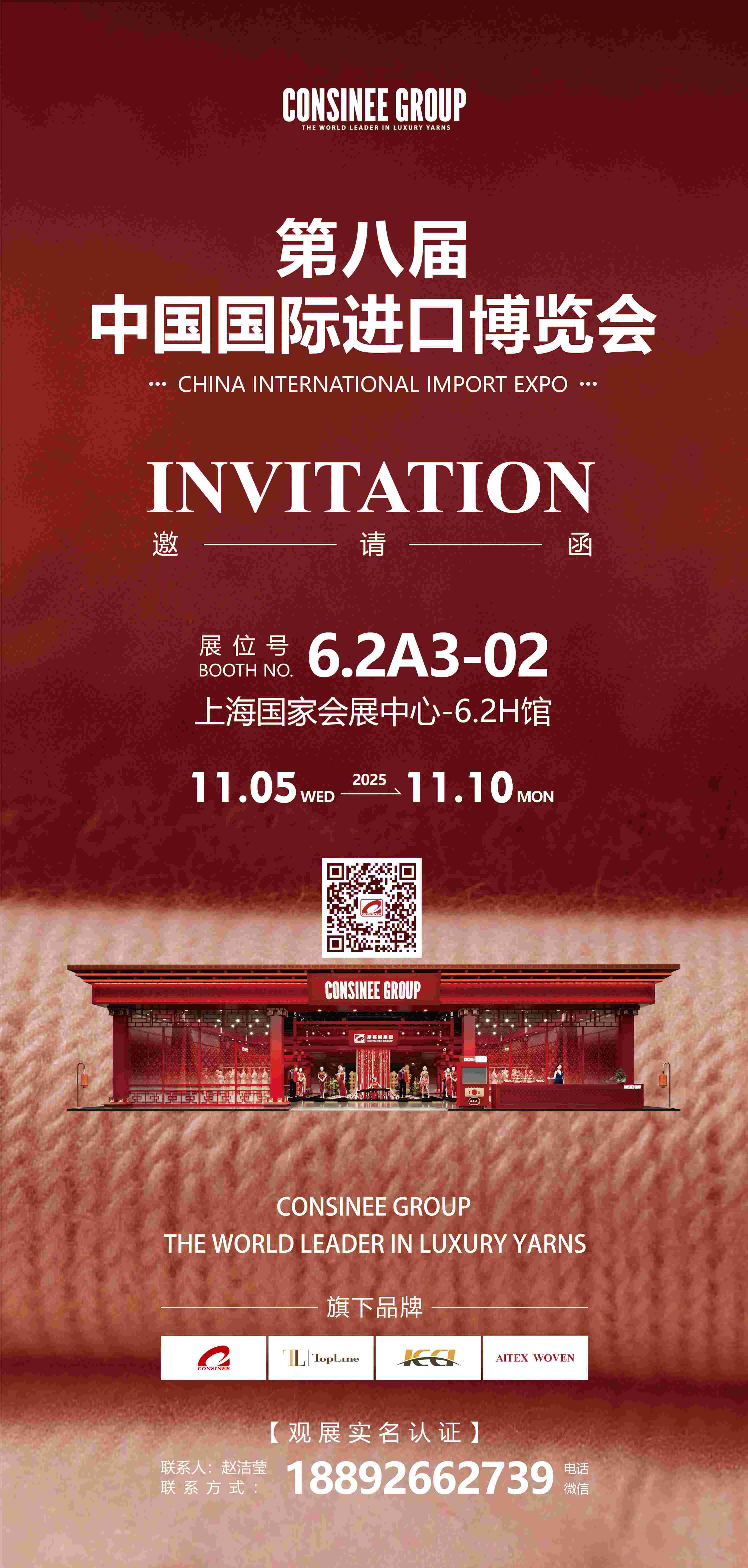 岁次乙巳,孟冬启序,沪上浦江之畔,第八届中国国际进口博览会将于11月5日-10 日,在国家会展中心(上海)盛启华章。中国羊绒匠心翘楚康赛妮集团,作为进博会唯一中国奢侈品品牌,携500㎡主通道雅境,踞6.2A奢侈品馆核心之位,毗邻LVMH、DOLCE&GABBANA等全球顶奢品牌,以“东方美人”翩跹之姿,呈献一场“材质载道,文化传情”的巅峰盛宴。