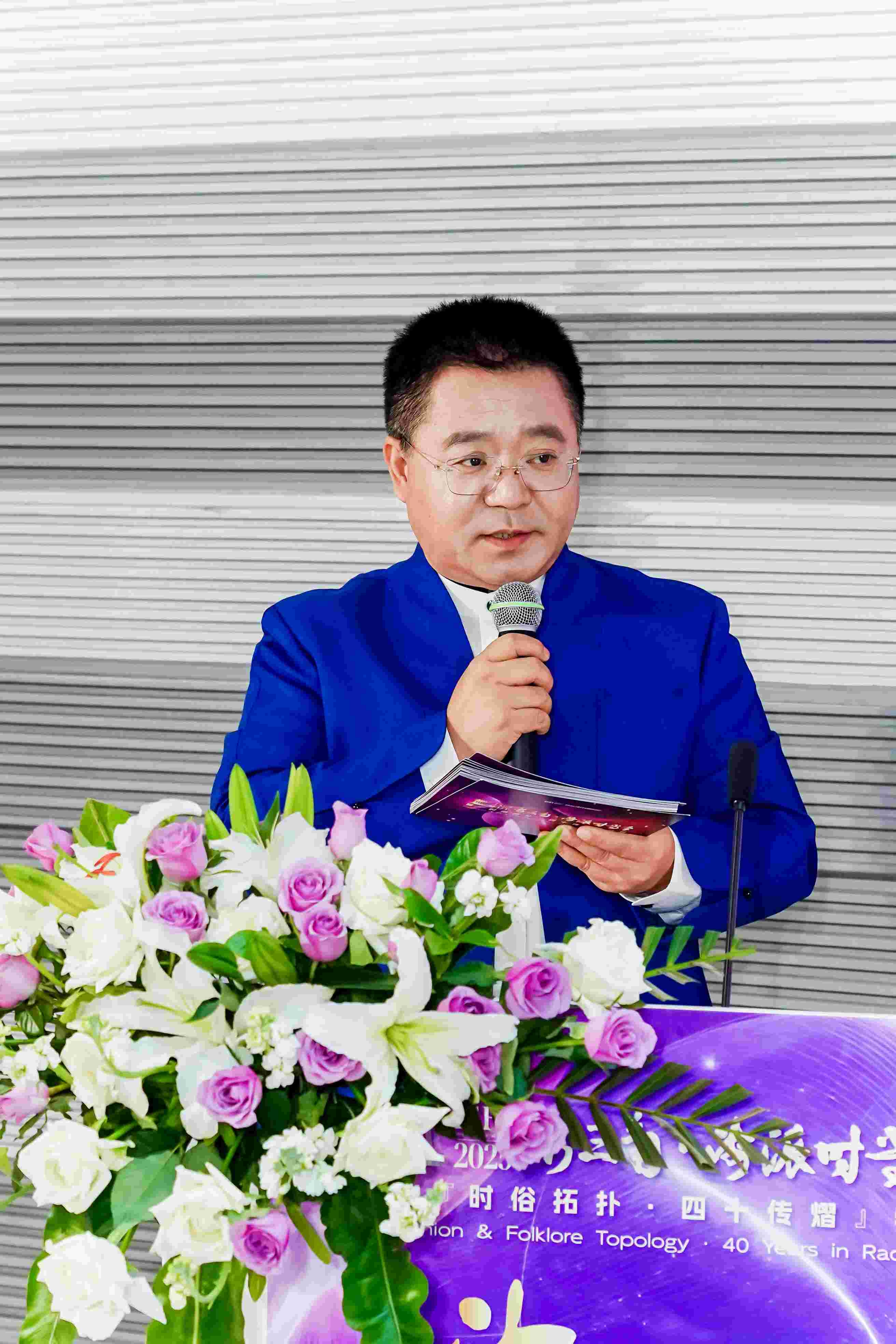 活动当天,康赛妮集团董事长、总裁薛惊理以上海市服饰学会联席会长身份深度参与盛会核心环节。在启动仪式上,薛董与上海市服饰学会会长刘春红共同展开上海市书法家协会主席丁申阳为此次活动挥毫的“海派时尚·四十传熠”书法贺卷,彰显海派文化与时尚产业的深度融合。在嘉宾致辞环节中,上海市文创办专职副主任刘波英先生、青浦区政协副主席徐孝芳女士、东方国际(集团)有限公司党委书记、董事长季胜君先生、东华大学党委书记刘承功先生发表讲话。