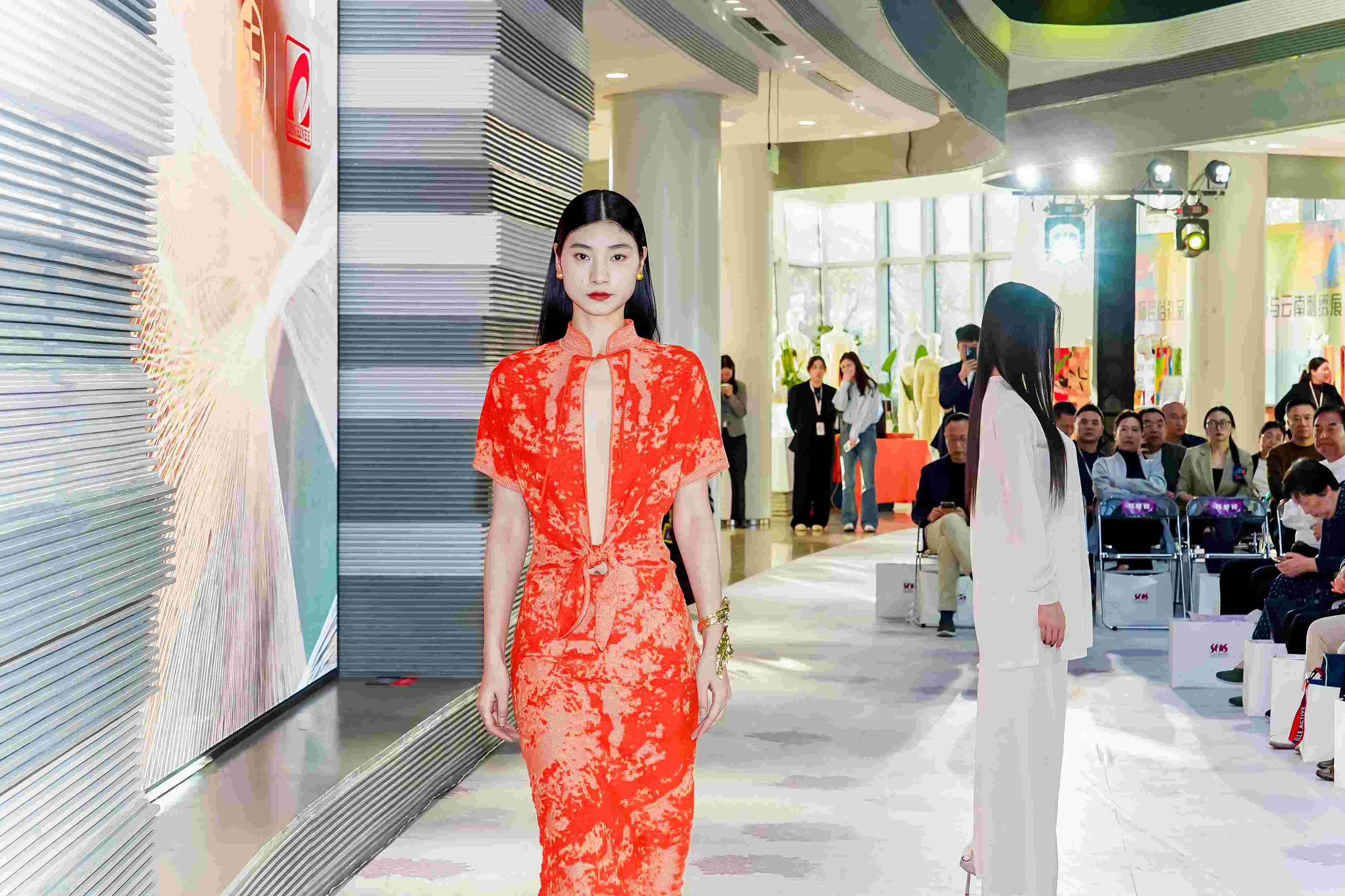 秀演服装以针织成衣为主,是由东华大学上海国际时尚科创中心团队创意版型设计、康赛妮集团纱线、慈星设备设计制作,也是针织时装中难度大的春夏款成衣。“熠衡·数启”,即蕴含品牌五行中万物发展与均衡的哲学叙事,也有人工智能时代以数学模式设计的图腾,版型更是与国际接轨。设计师甄选了康赛妮集团旗下三大品牌CONSINEE、TOPLINE、ICCI的20多种纱线,有被誉为天然纤维之王的汉麻、独特性能的纸纱、真丝羊绒等,将他们创作成40余套华服,开启一场东方美学和数字未来的深度对话。