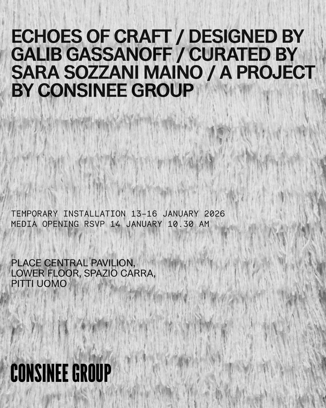 意大利佛罗伦萨,Pitti Uomo 109的聚光灯下,一场关于工艺与时光的对话正悄然启幕。2026年1月13日,康赛妮集团携全新艺术项目“工艺回声Echoes of Craft”惊艳登场——这一次,我们不做商业的陈列,只赴一场纤维与艺术的深度相拥。
