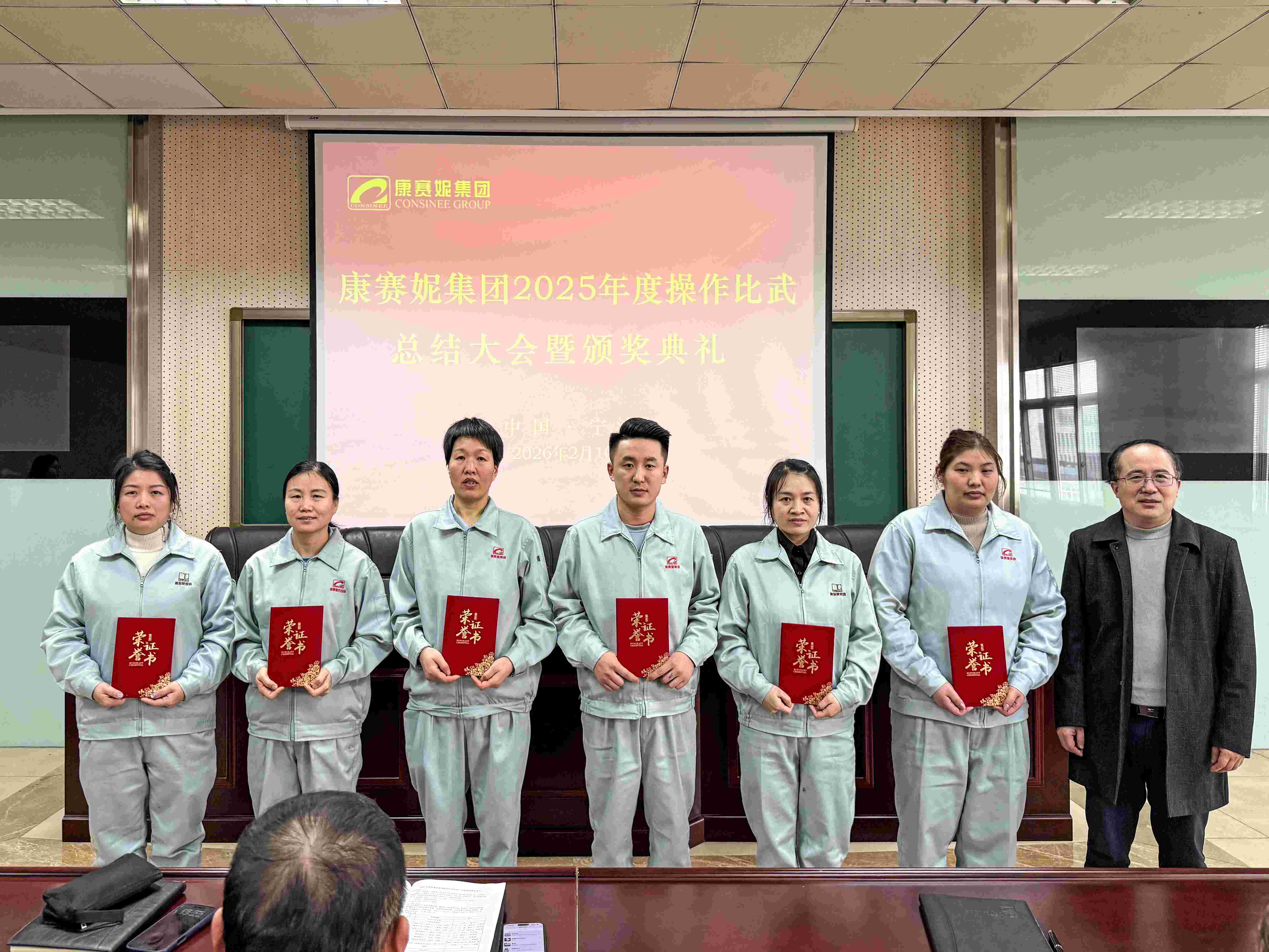2026年210日,康赛妮商学院内掌声雷动,气氛热烈。康赛妮集团2025年度“岗位练兵ž操作比武”表彰大会在此隆重举行。来自集团各分厂、车间的技术精英、岗位能手及优秀班组等代表共计150余人齐聚一堂,共同见证这一荣耀时刻。